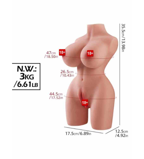 0 (544) 493 66 853 kg ağırlığında silikon mini yarım vücut 35,5 cm uzunluk 17,5 cm genişlik 12,5 cm yükseklik